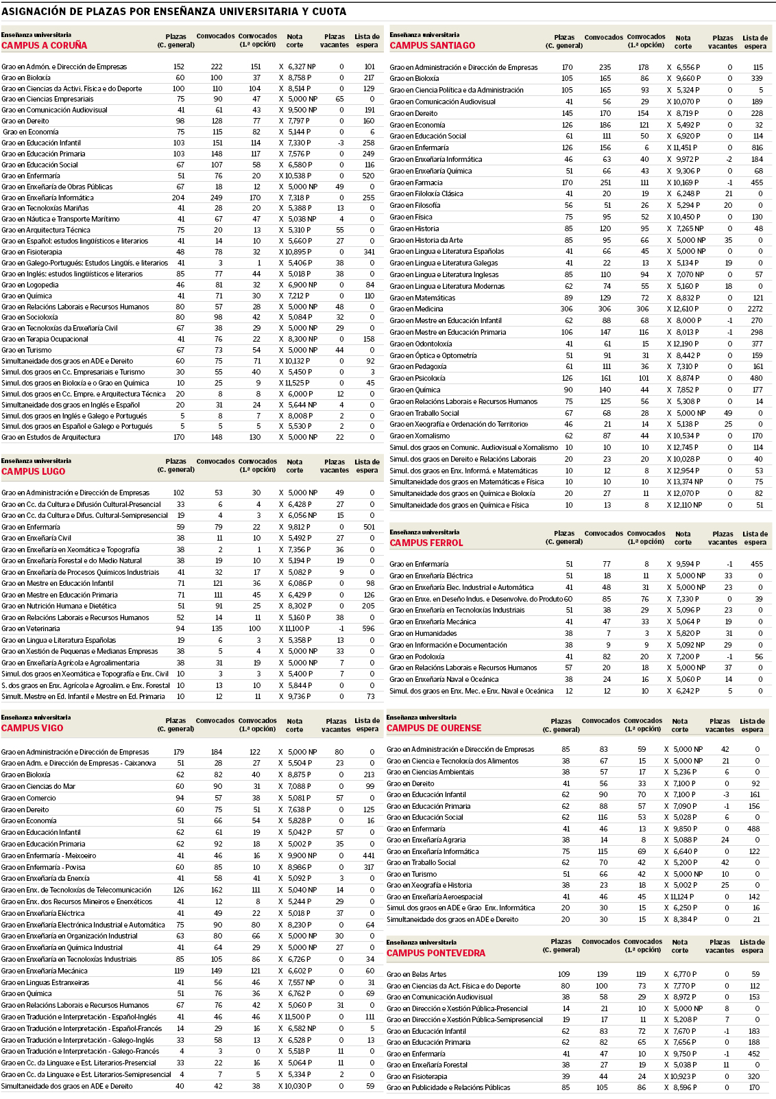 Veintidos Titulaciones Gallegas Tienen Una Nota De Corte Inicial