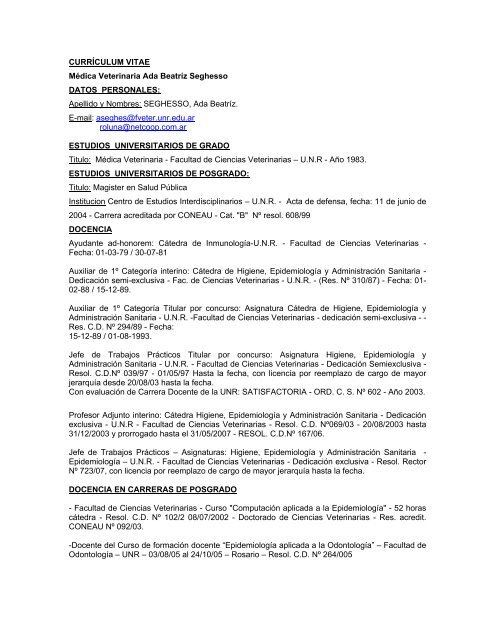 Curriculum Vitae Facultad De Ciencias Veterinarias Universidad